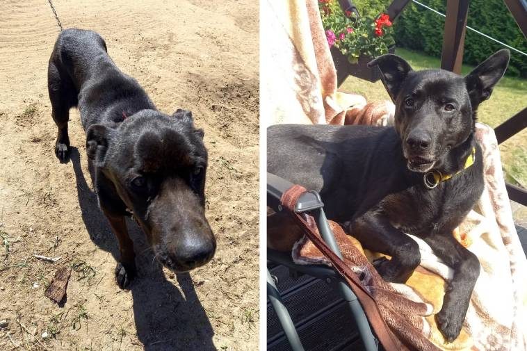 7. “Неимоверно худой пес с грустными глазами, который сидел на короткой цепи. Именно таким мы встретили его ровно 2 месяца тому назад. Сейчас это вполне упитанный красавчик, который много гуляет, есть, когда захочет, и спит на теплой кроватке.”