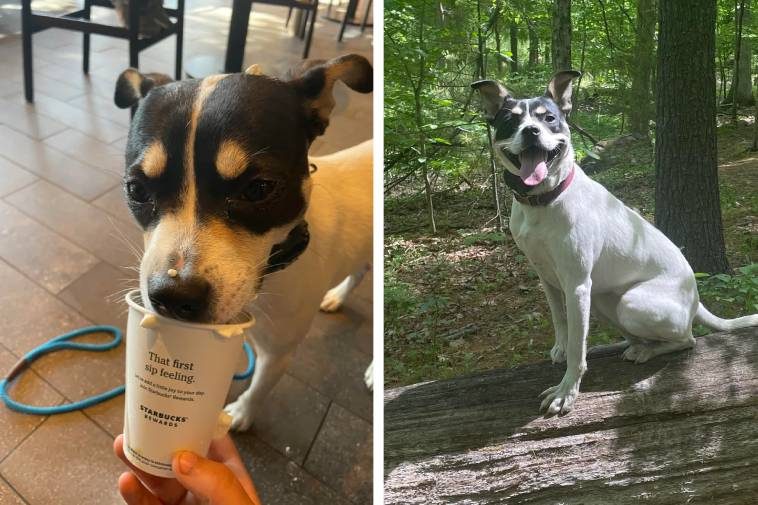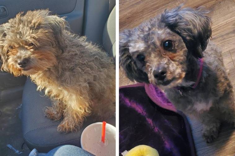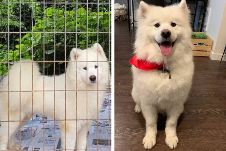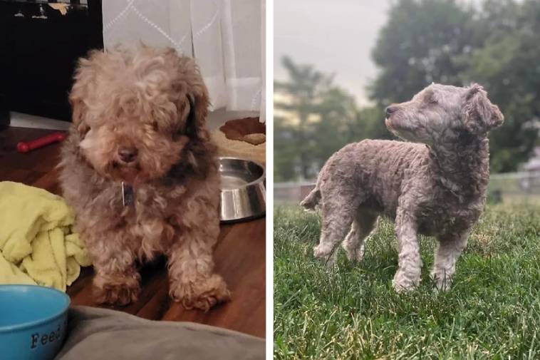 3. “Наш пёсик до того, как мы его забрали и после. Он не только подрос, но и стал уверенным в себе.”