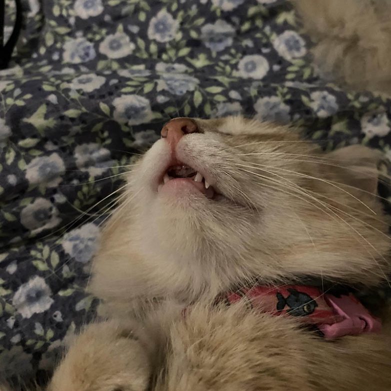 5. “Наша кошка практически всегда спит со слегка открытым ртом. Наверно, чтобы все видели, что она хорошо вооружена, и не тревожили ее сон.”