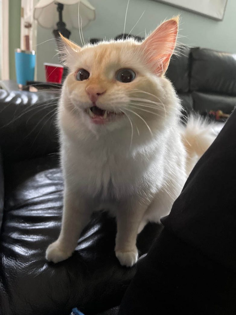7. “У этого кота шикарные усы! Но и зубки тоже привлекают внимание.”