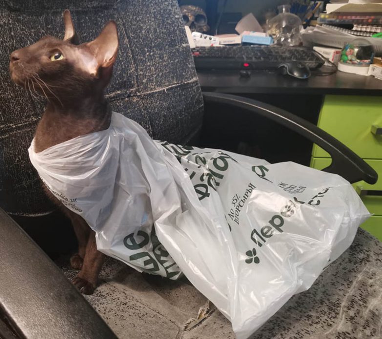 8. “Интересно, а почему это обертка от мятной конфетки так заинтересовала кошку?”
