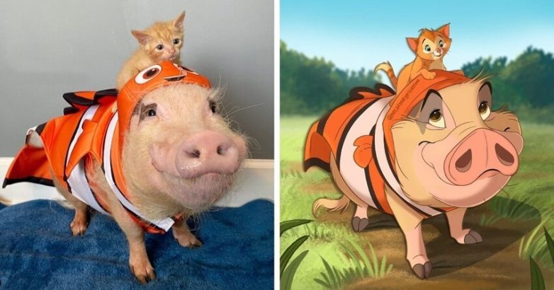 Портреты животных по фото, похожие на персонажей мира Дисней