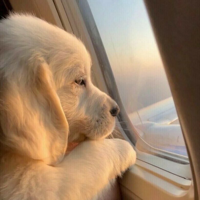 Даже пушистым малышам нравится смотреть в иллюминатор во время полета