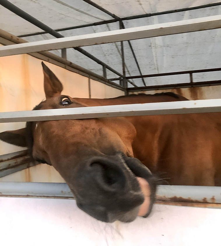 Лошадка изо всех сил намекает, что не против полакомиться какой-нибудь вкусняшкой
