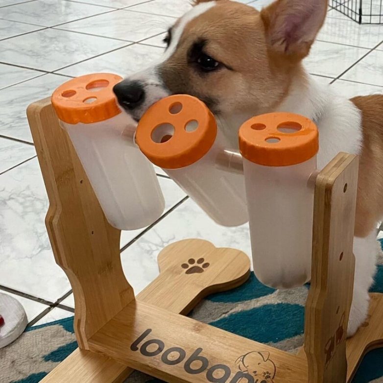 Чтобы добраться до лакомства, питомцу следует немного подумать. Такая кормушка — отличное развлечение для щенков и взрослых собак.