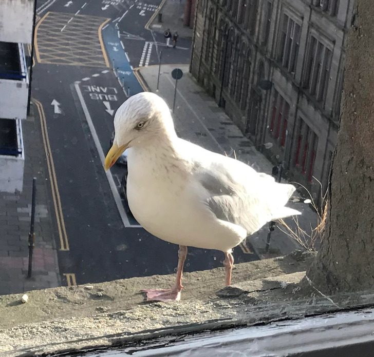 «Чайка каждый день прилетает на мое окно и терпеливо ждет еды. Она застенчивая, но дружелюбная и шумная. Когда видит меня, стучит в окно или кричит. А после трапезы издает громкий протяжный писк»