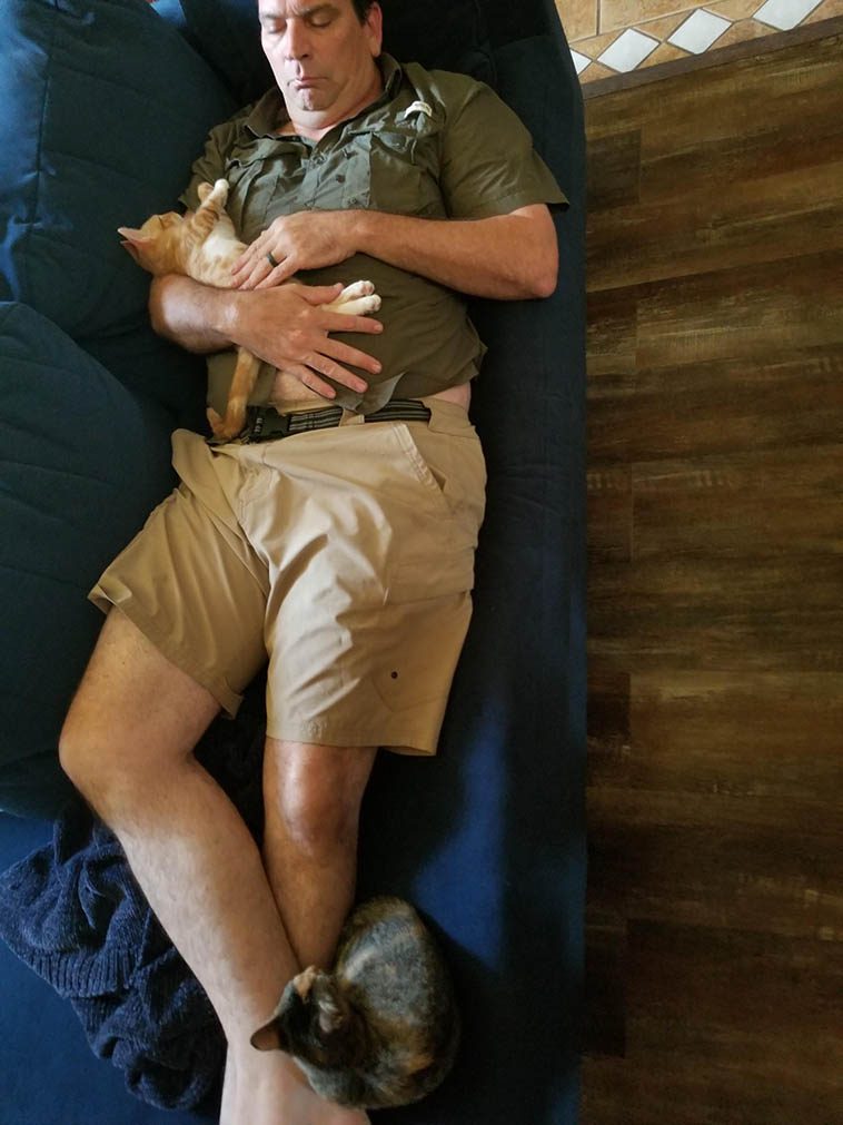 14. “Всю свою жизнь мой муж терпеть не мог котов. Хотя, глядя на этот снимок, в подобное трудно поверить.”
