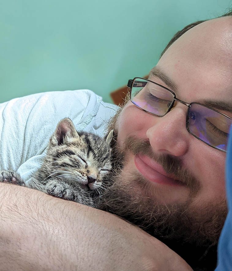 4. “Даже не знаю, кто из них более счастливый: маленький котенок, который только что обрел дом, или мой муж, который был против любых домашних питомцев”