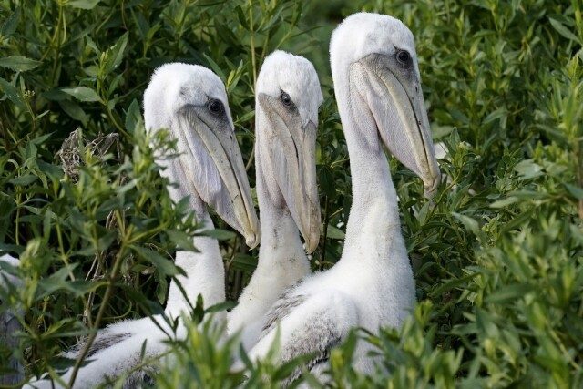 4. Молодые американские бурые пеликаны сидят в своём гнезде на острове Раккун, барьерном острове Мексиканского залива, который является местом гнездования бурых пеликанов, крачек, чаек и других птиц, 17 мая 2022 г. (фото: Gerald Herbert/AP Photo)