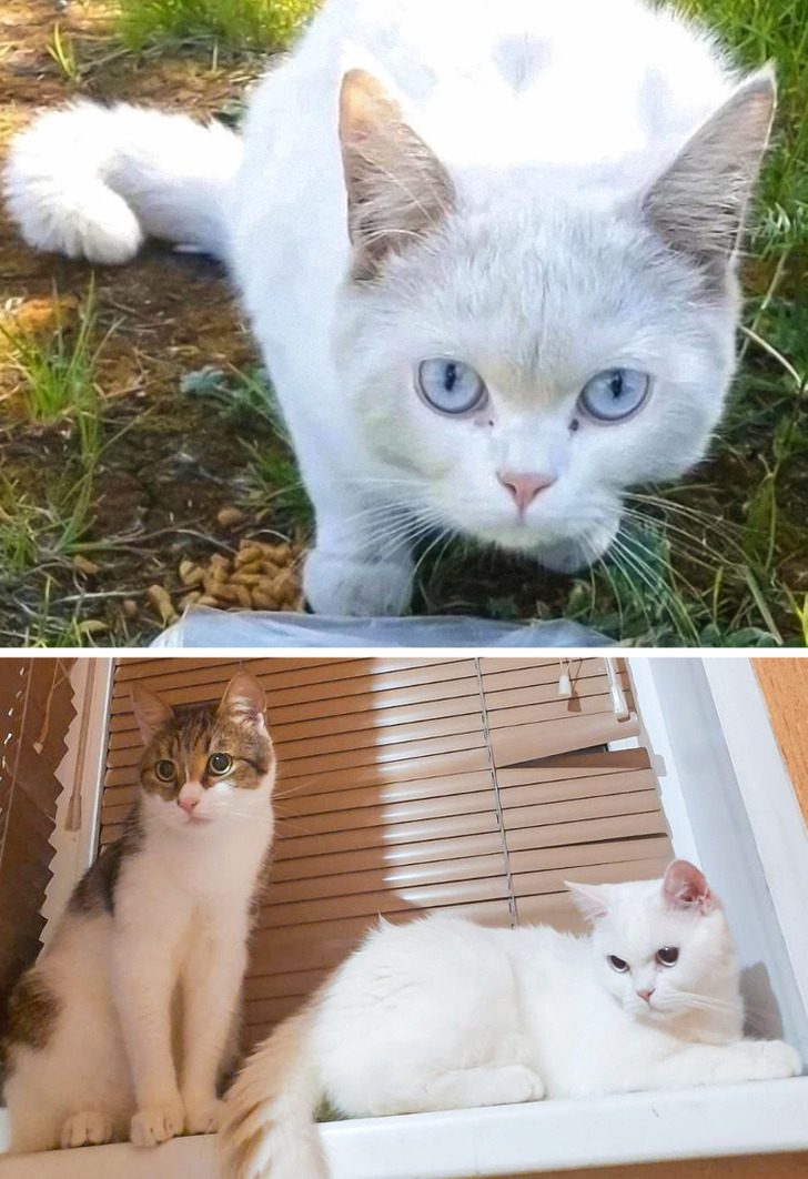 «Все они были худыми и блохастыми. Мы их вылечили и оставили себе. И вот спустя 2 месяца котята выглядят гораздо лучше».
