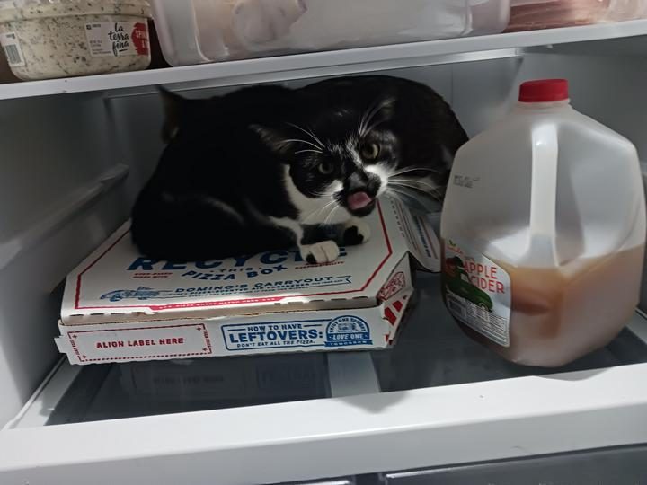 7. “Еще теплая пицца заманила моих кошек в холодильник”