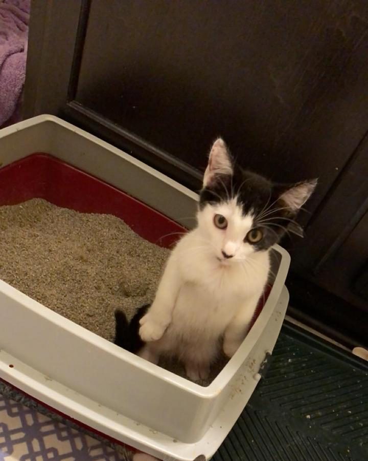 6. Невероятно, но факт: этот котенок ходит в лоток стоя
