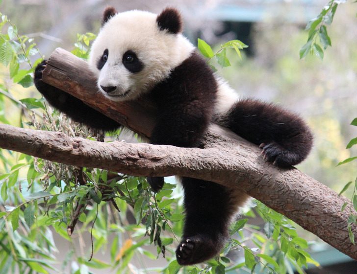 Гигантские панды — прекрасные пловцы и очень ловко умеют лазать по деревьям. Они учатся искусству покорения вершин еще в возрасте 5 месяцев и иногда тренируются, карабкаясь по маме.