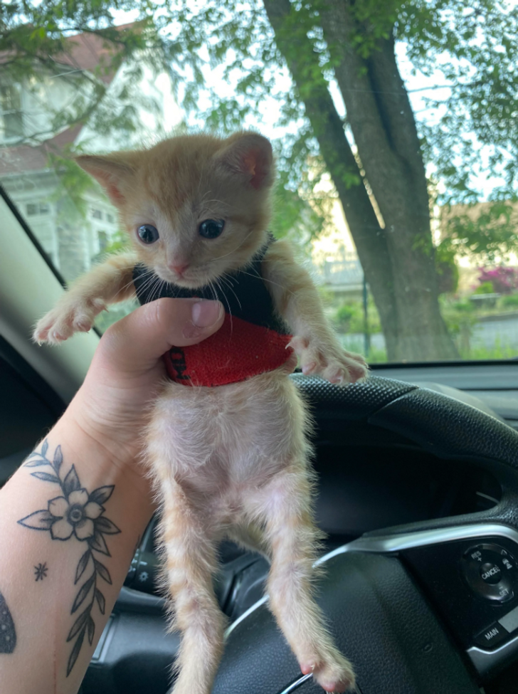 «Это Рыбка. У него синдром плоской грудной клетки котят. Он носит корсет, чтобы нормально расти. Дети еще не знают, что это наш новый член семьи»