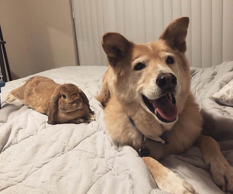 13. “Сначала собака постоянно лаяла на кролика. Но со временем они все же стали лучшими друзьями и теперь просто неразлучны.”