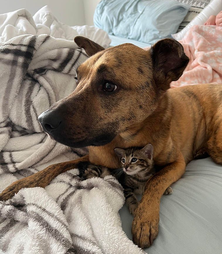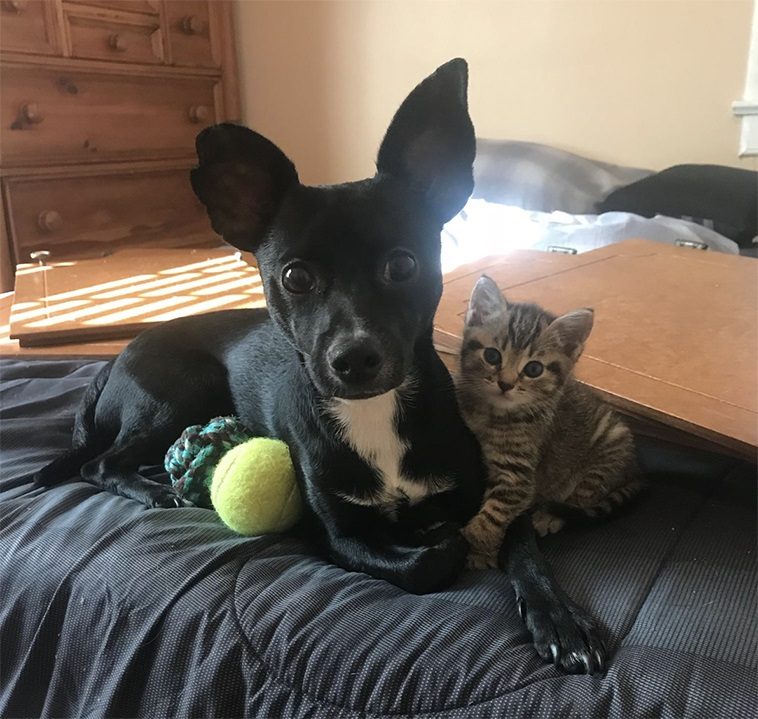14. “Собака ведет себя по отношению к котенку, как старший брат. И со стороны это выглядит очень мило.”