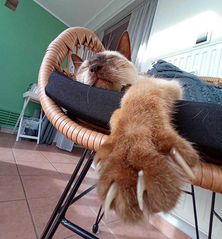 10. Кажется, этот котик сам в шоке от того, насколько длинные и острые у него коготки