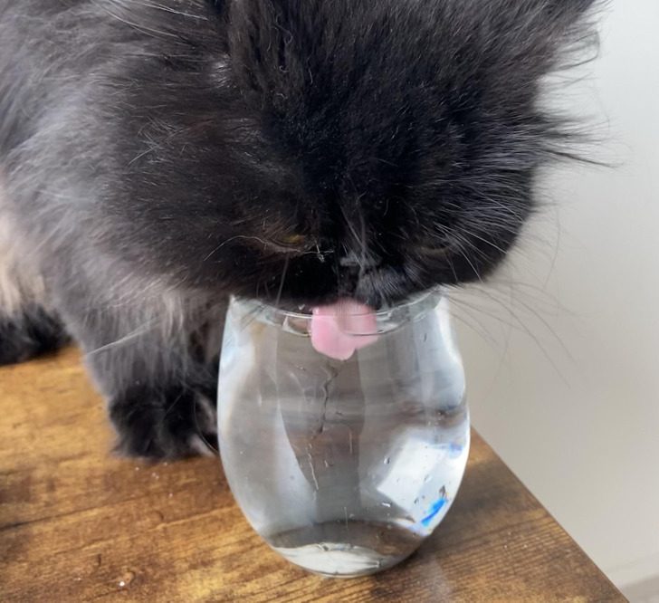 «Почему кошка пьет только из моего стакана? Всегда, когда я ставлю себе воду, она подбегает и начинает пить»