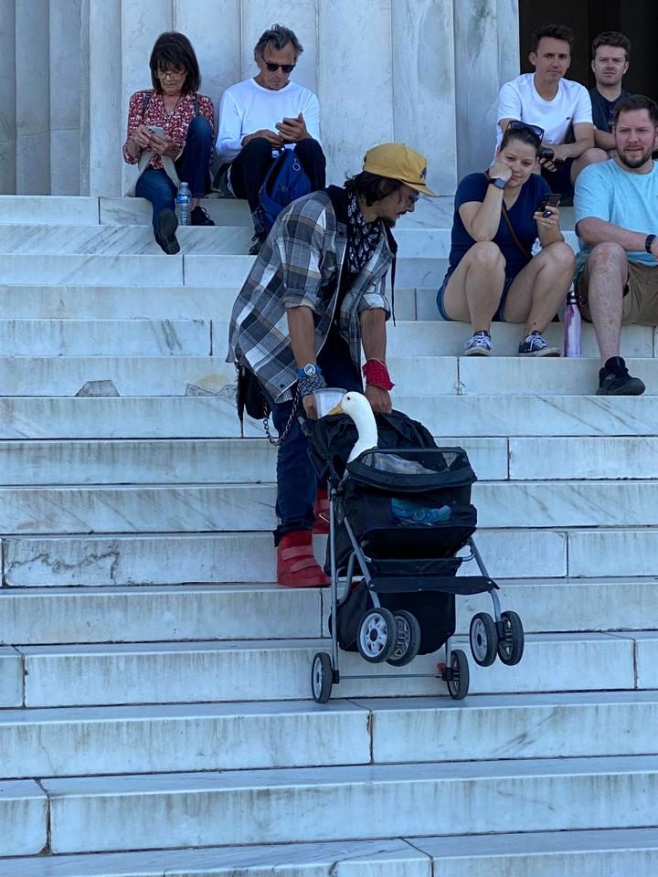 1. Мужчина с уткой возле мемориала Линкольну в самом центре Вашингтона. Согласитесь, это довольно необычная картина