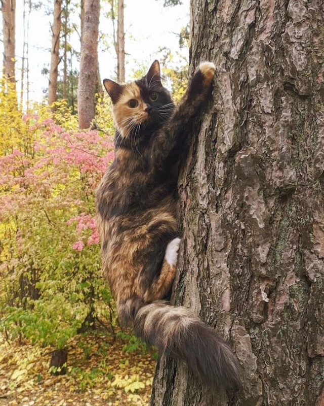 Это Яна (Yana), очаровательная кошка-химера, которая выглядит так, будто у неё две мордочки. Её хозяйка, Элизабет, говорит, что у Яны уникальная не только шерсть, но и характер. Кошка любит играть в мяч, пьёт чай и увлекается искусством.