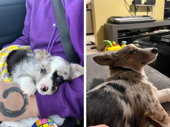 18. “У нашей собаки довольно необычный окрас, и этим она выделялась как в детском возрасте, так и сейчас, когда ей исполнилось 13 лет”