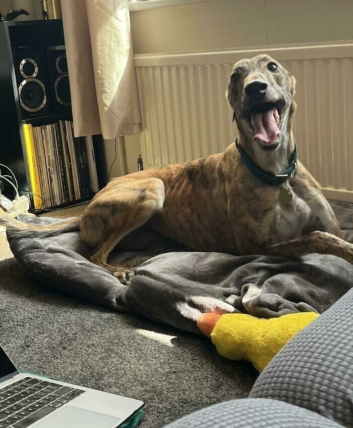 «Кажется, наш новый пёс увлёкся наблюдением из окна»