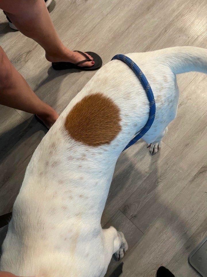 2. Пятно на спине у этой собаки имеет форму практически идеального круга