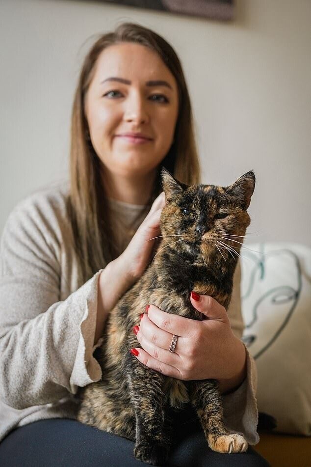 Флосси подобрали на улице, когда она была еще котенком. Она прожила в любящей семье 24 года, но позже её хозяйка скончалась — и кошку передали в центр спасения. Затем для кошечки нашли новую хозяйку — ей стала 27-летняя девушка по имени Вики Грин. Она тут же влюбилась в эту очаровательную пожилую даму.