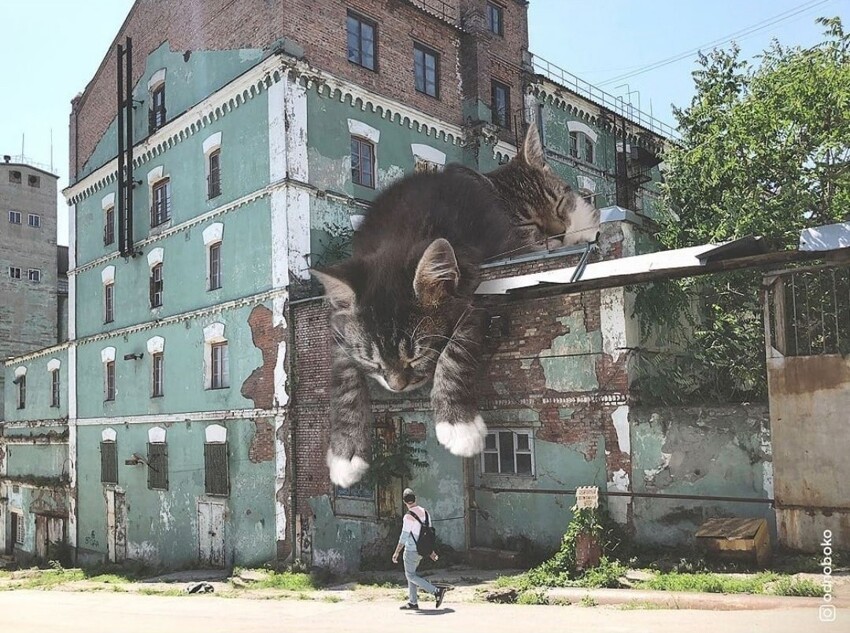 Представьте, если бы коты и кошки были больше в несколько раз, как бы это выглядело?