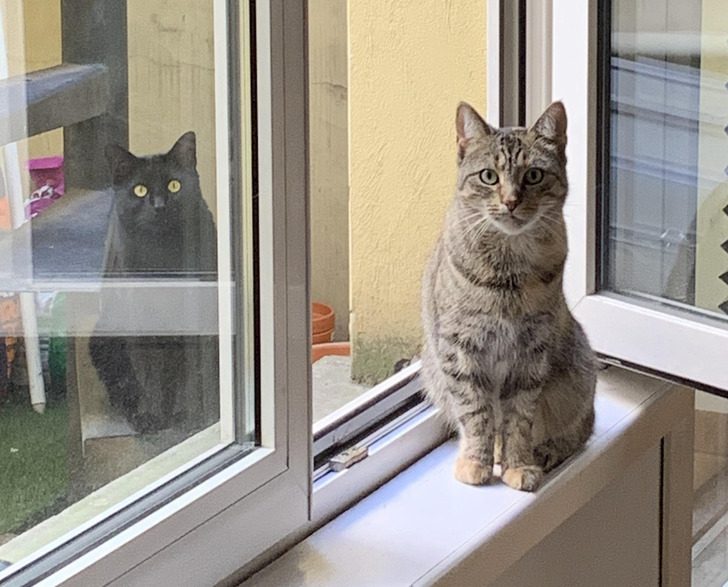 «Черная кошка — соседская, мы ее кормили. Сегодня утром она привела друга»