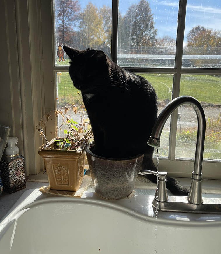 14. “Котенок проверяет, будет ли этот горшок удобным для растения, которое я собираюсь в нем посадить”