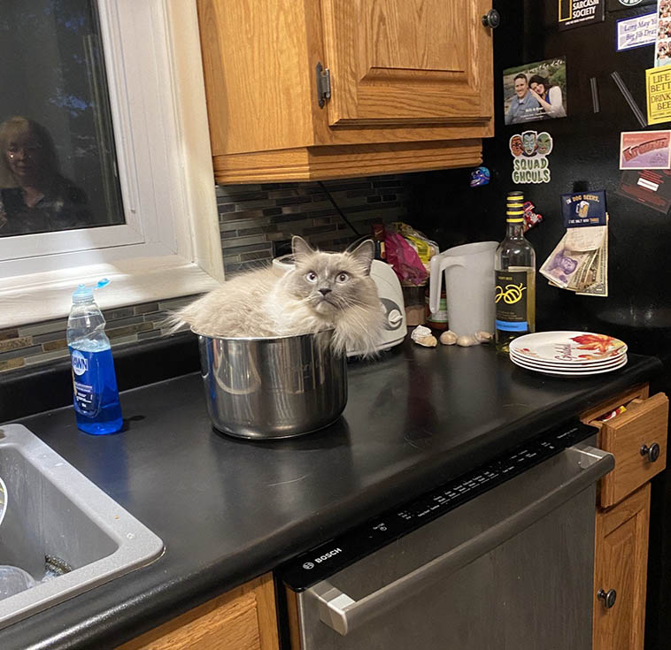 8. “Кажется, мой котик то ли рихтует посудомойку, то ли немножко застрял”