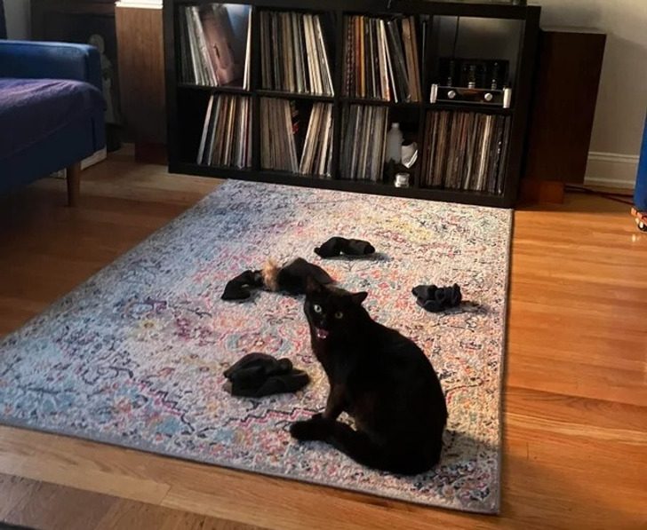 «Бросил футболку на пол рядом со стиральной машиной. Мой кот 3 минуты спустя»