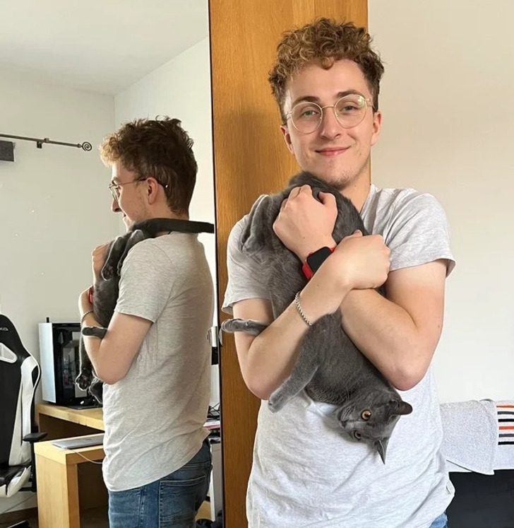 «Я уже несколько недель пытаюсь сфотографироваться с моим новым котом. Ну хоть так получилось»