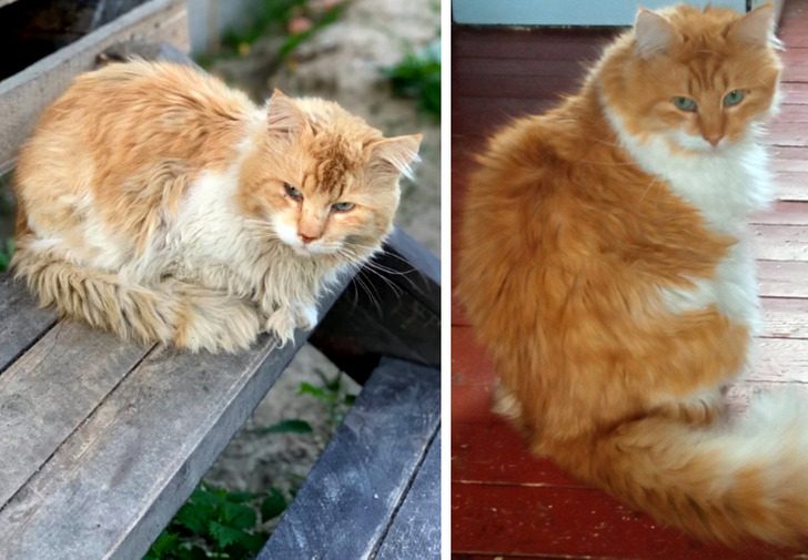«Этот кот несколько лет назад пришел ко мне на крыльцо с температурой и колтунами. Вот как он выглядит сейчас»