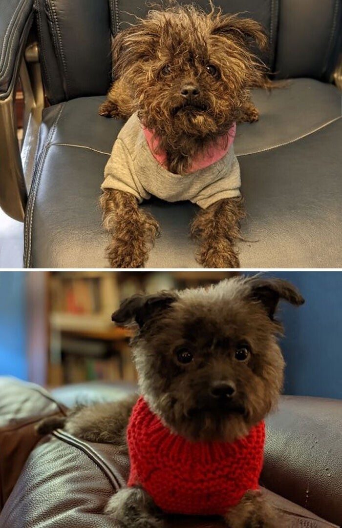 «Мы усыновили Луну на прошлой неделе, и сегодня у нее была первая встреча с грумером. Я не уверен, что мне вернули ту же собаку»