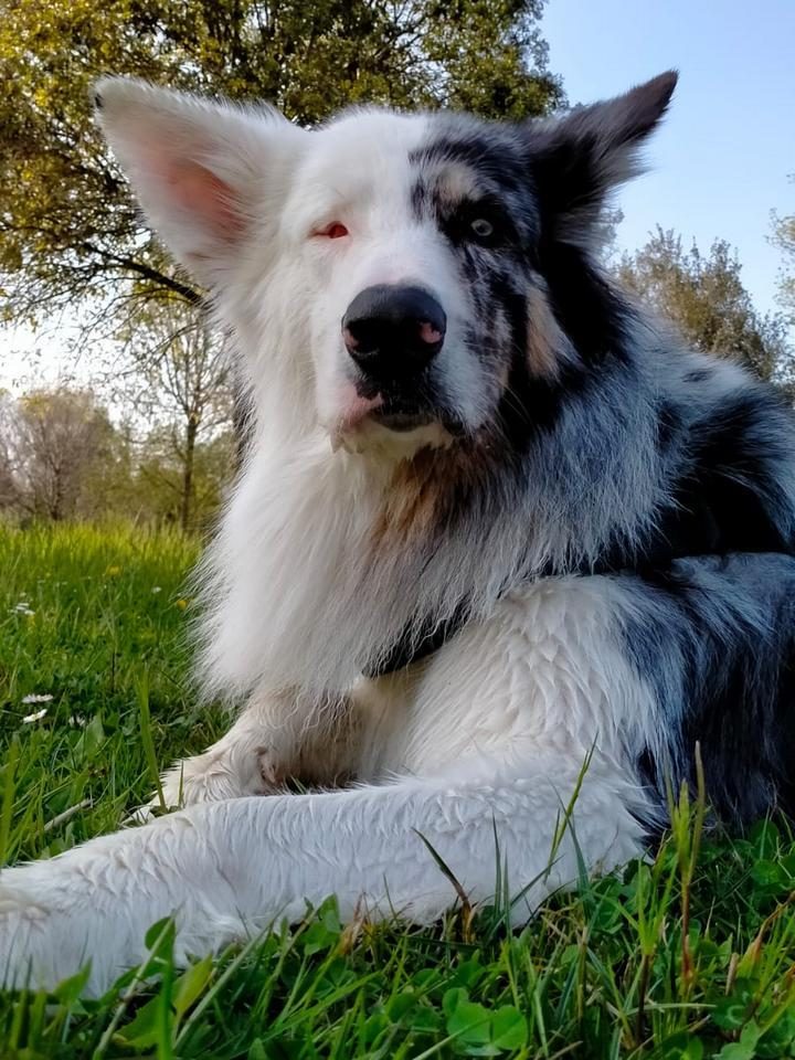 3. “У моего пса частичный альбинизм, и эта особенность делает его самой узнаваемой собакой в нашем городке”