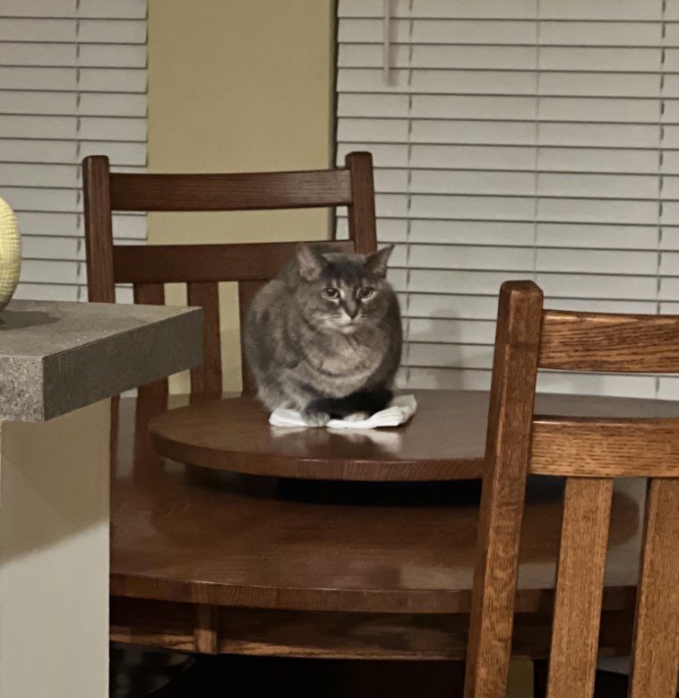 19. “В последнее время ей начало нравиться сидеть на столе на стопке чистых салфеток”