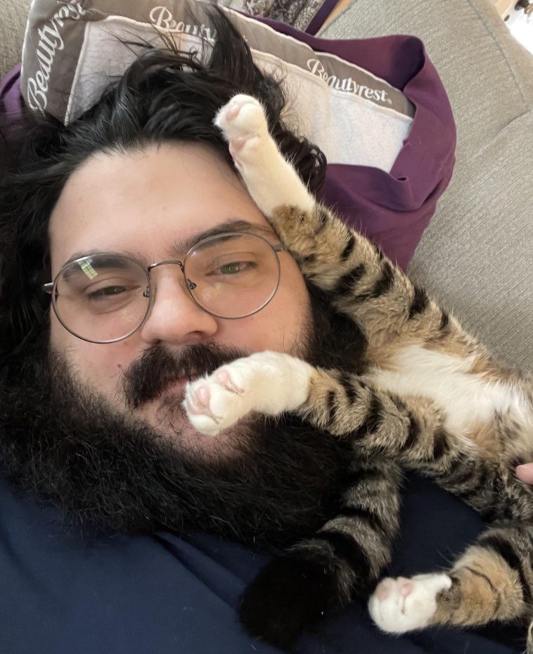 8. “Пока мой котенок спит в своей любимой позе, мне приходится наслаждаться его лапками на своем лице”