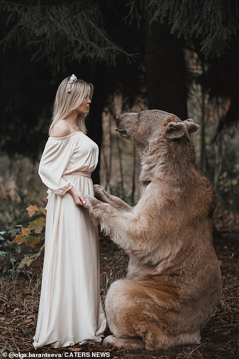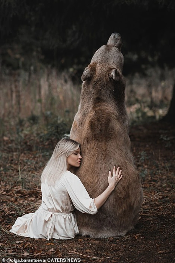 Ольга сказала, что всегда любила фотографировать людей с животными и пару лет назад смотрела несколько телевизионных передач с медведем, который также снялся во многих российских фильмах.
