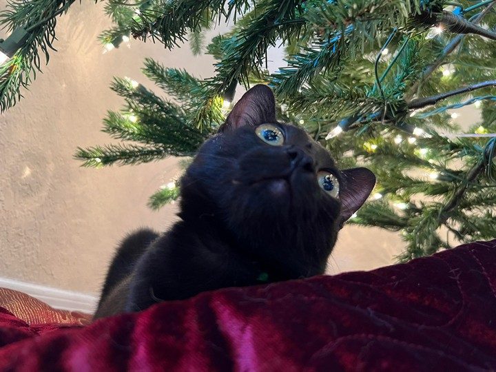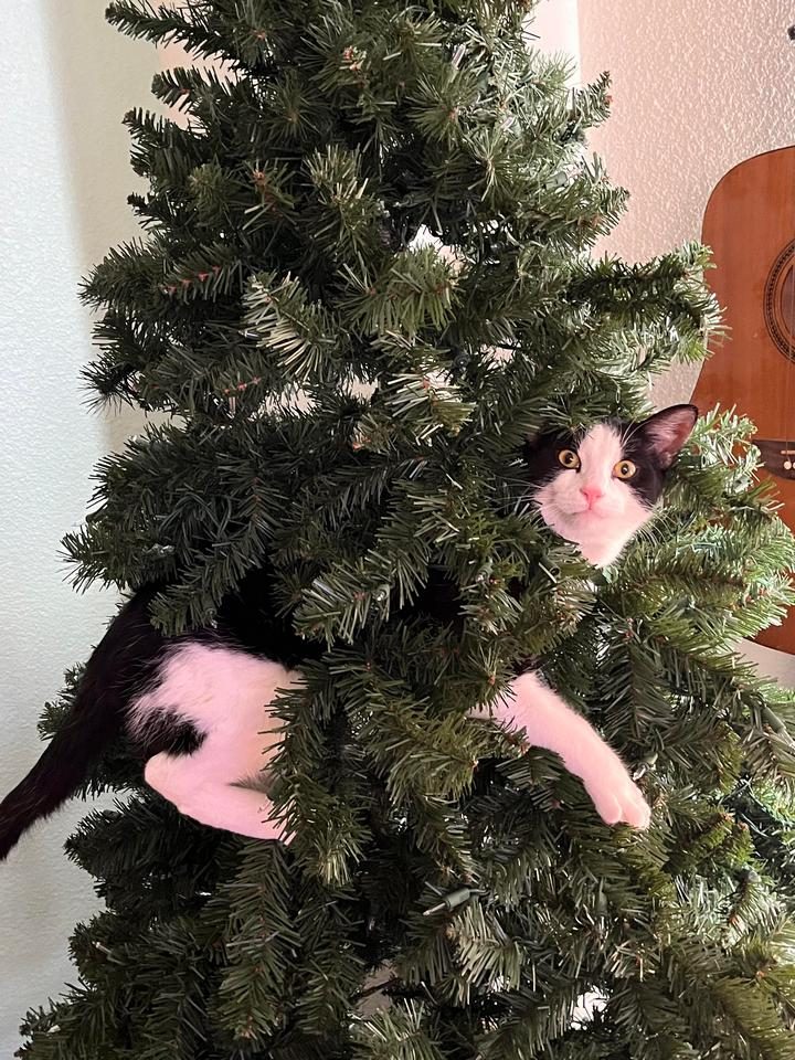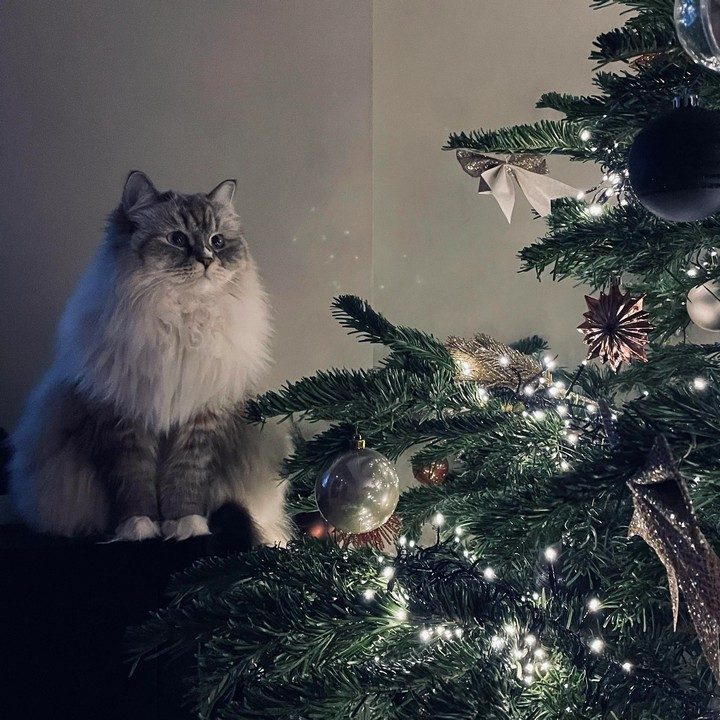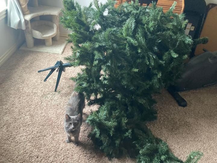 5. “В этом году у нас довольно большая елка, но кот не оставляет попыток её повалить”