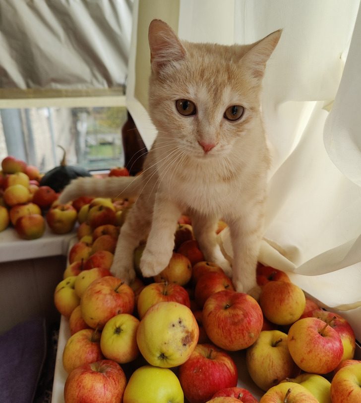 «3 недели назад нашли котенка в подъезде. Растет как на дрожжах. Старшая кошка в шоке»