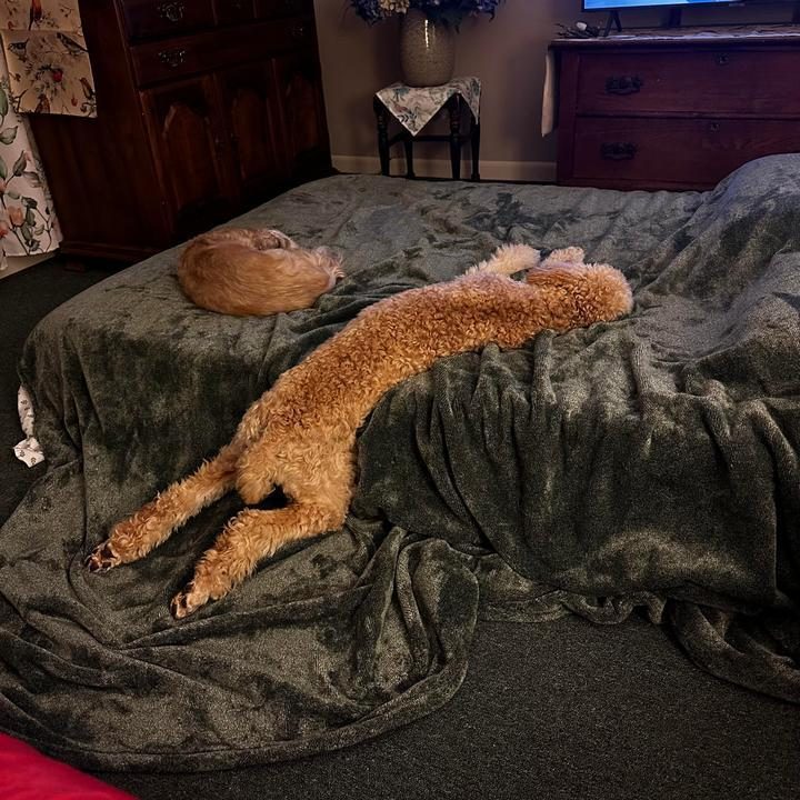 8. “Наш пудель так устал на прогулке, что спит буквально без задних ног”