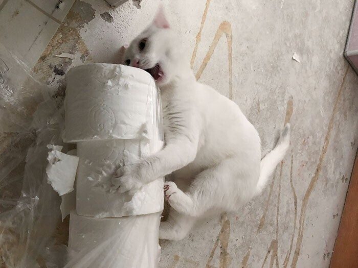 А так, у них любимые развлечения — туалетную бумагу размотать и порвать в клочья, щётки от зубной до швабры разгрызть… ну и мягкая мебель — их одна из главных целей ..!