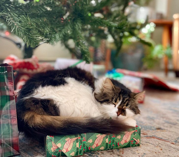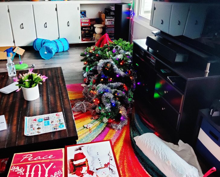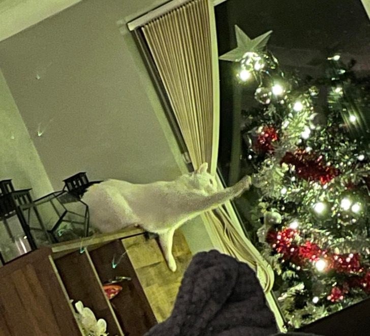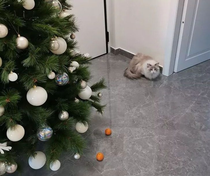 «Мой кот не любит запах мандаринов, поэтому я создала „силовое поле“, чтобы защитить новогоднюю елку»