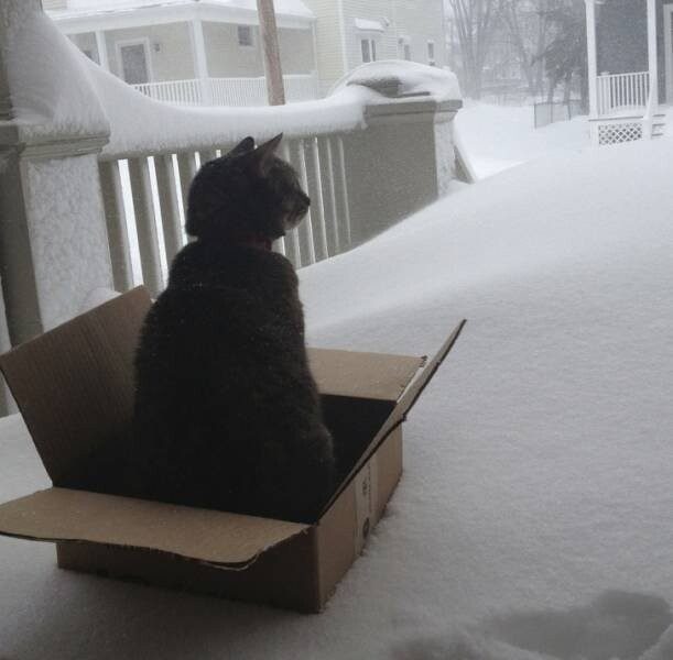 Фотографии о непростых взаимоотношениях домашних кошек со снегом