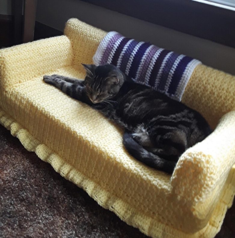 Хозяева вяжут для котов диванчики
