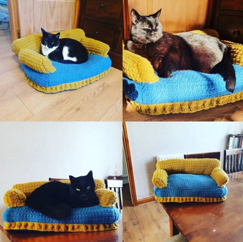 Все любящие хозяева любят порадовать своих питомцев, а некоторые с радостью делают что-то своими руками. Эти хозяева связали для котеек миниатюрные диванчики — и это просто очаровательно. Посмотрите, как эти мордочки довольны!