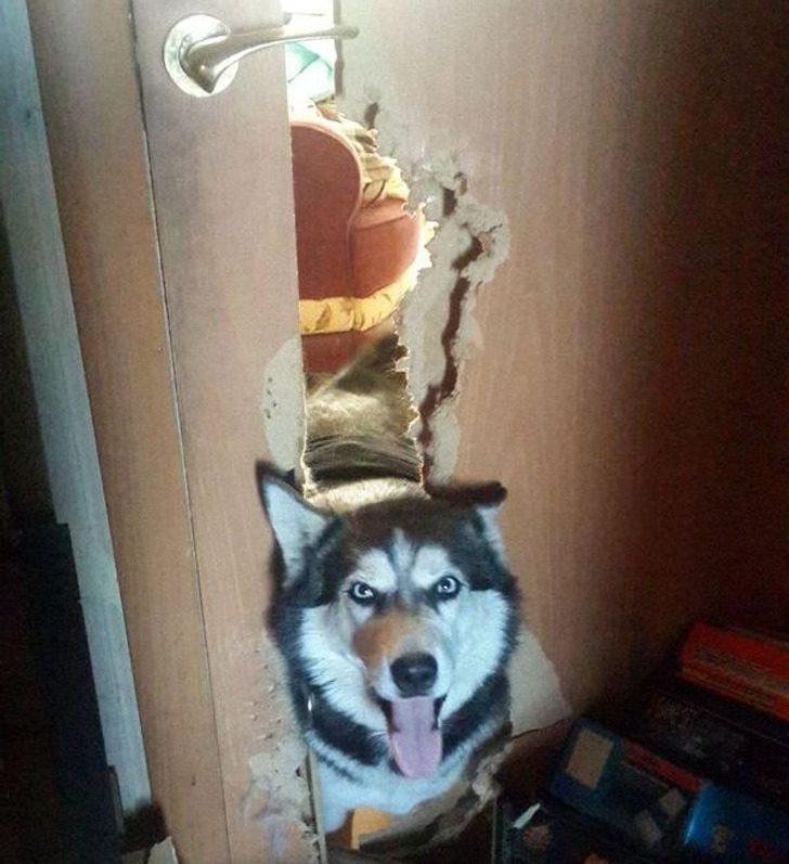 «Прихожу я такой домой с работы, а там сюрприз. Видимо, собака решила, что ей места в коридоре мало, и постаралась пробраться в запертую комнату»