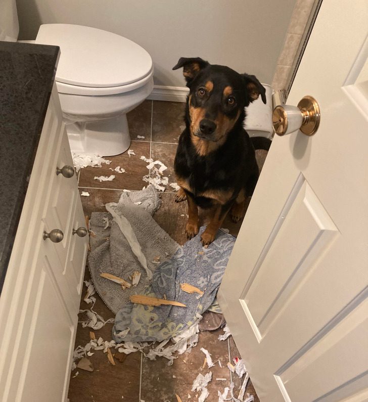 «Вернулся с работы, а собаки нигде нет. Думал, может, сбежала? Оказалось, она заперлась в ванной и решила сделать ремонт»